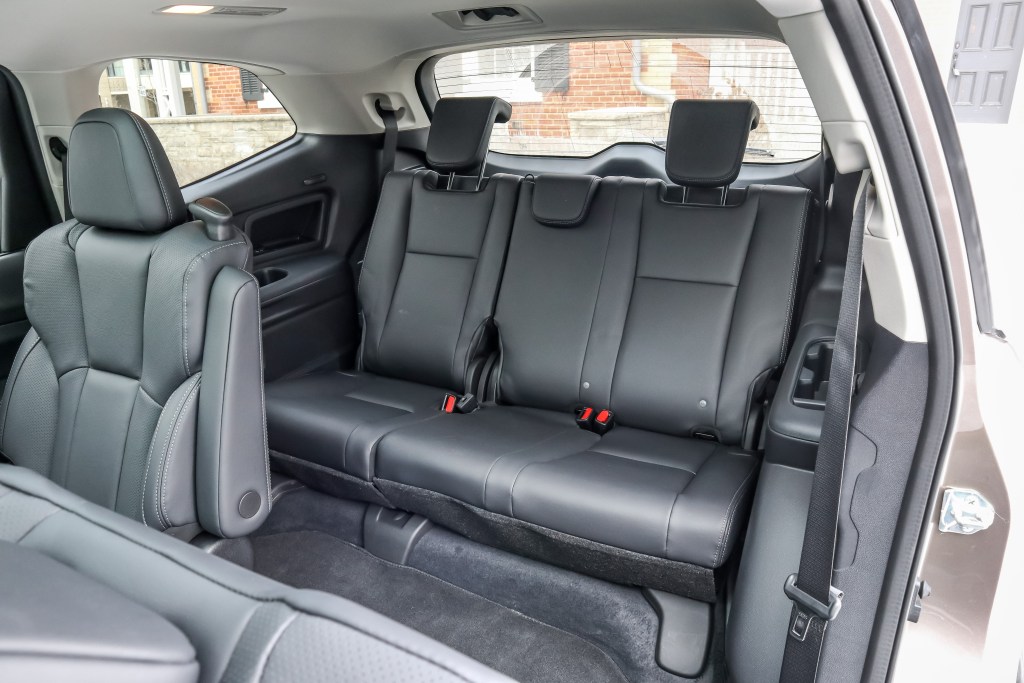 身型尺碼所造就的空間感在內廂中顯而易見,坐進內廂,感覺儼如置身於一部迷你客貨車之內。2+3+3為標準座椅編排,但Touring,Limited及Premier型號買家亦可將中排的六四分割三人格式改為左右獨立captain座椅。中排的肩位和腳膝空間都是同級七人SUV中最為闊落的,以第三排座椅來安坐兩名大人不僅不會感到牽強,長途行車亦不會收到投訴,皆因中排乘客均可將座椅向前拉近好以騰出更多空間予後排乘客,而最令我感到意外的,莫過於中排座椅的前後調校設計竟提供多達七節度之多。進出第三排座椅也非常容易方便,只須單手便輕而易舉地將第二排座椅向前翻移。不用多載人往來之時,此第三排是可作六四分割向前扳平(若能加設電撳掣就更好),載貨量會隨此從498公升遞增至1,331公升,若再連同第二排座椅向前扳平之後,終極載貨量便會大大地攀增至2,435公升。