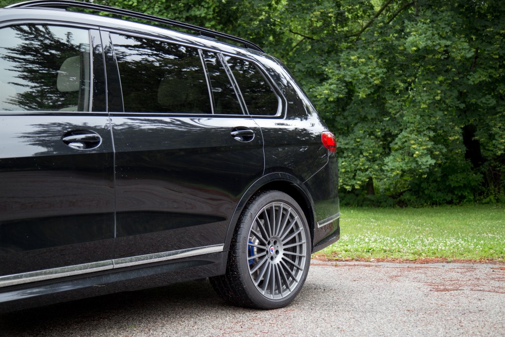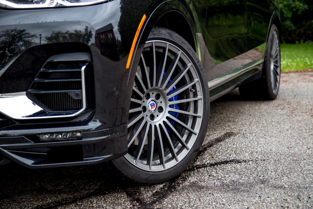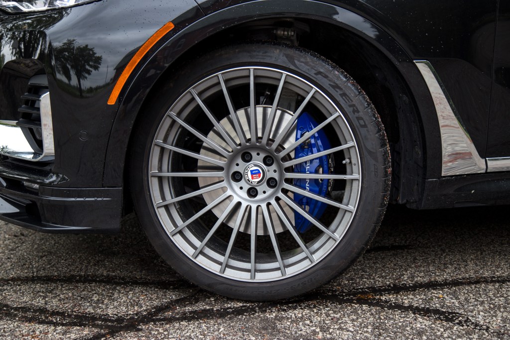 在美學觀感上,XB7以超巨兼標準設備的23寸輪鈴脫穎而出,與梅賽德斯-奔馳在旗下GLS SUV上所使用的輪鈴無不類似。輪鈴採用Alpina經典的20輻瓣設計,但若嫌過大的話,不妨改選更細、更輕的21寸輪鈴,夏季高性能或四季run-flat任君選擇,試車之23寸輪圈尺碼,前為285/35ZR23,後為325/30ZR23。
