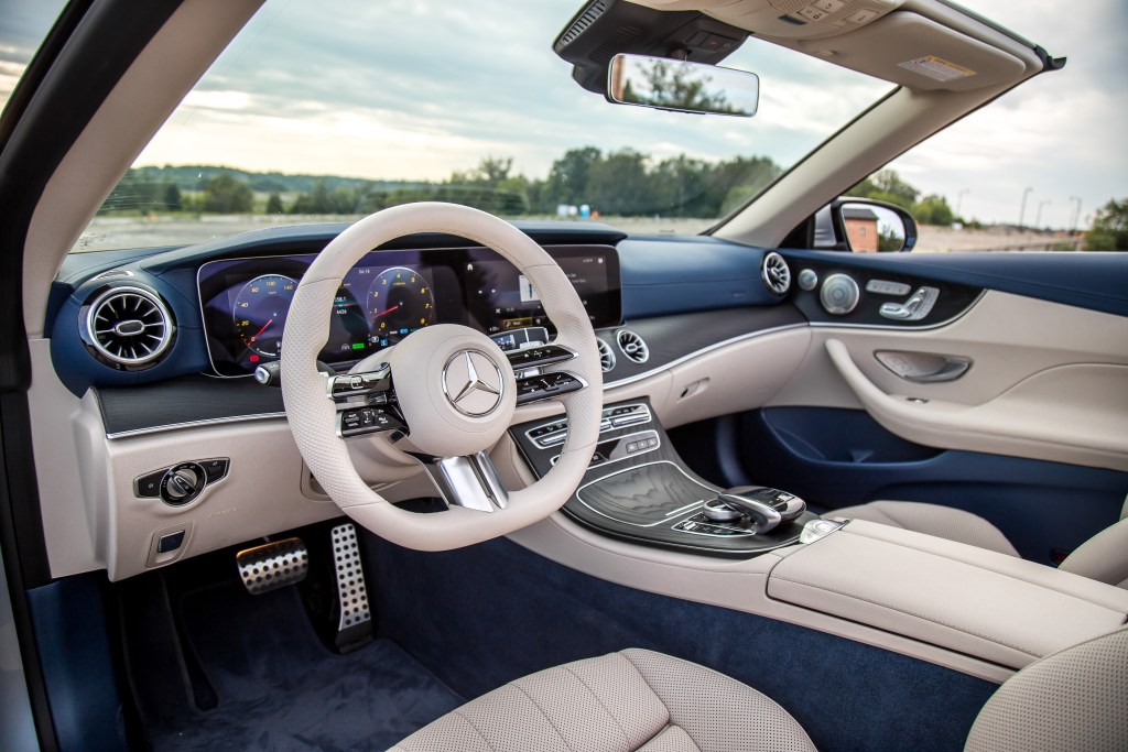 2021 E-Class Cabriolet設有E 450 4MATIC Cabriolet和AMG版的AMG E 53 4MATIC+ Cabriolet。E 450 4MATIC Cabriolet的基本售价为$88,900.00而AMG E 53則要$99,000,前者只比Coupe版多索$7,000,但由於AMG大包圍包括AMG前後底裙,AMG側身沙板以及AMG輪鈴等等均是Cabriolet的標準裝飾(試車之20寸AMG多瓣合金鈴則要附加$1,250),是以那七千元差價也是物有所值的。