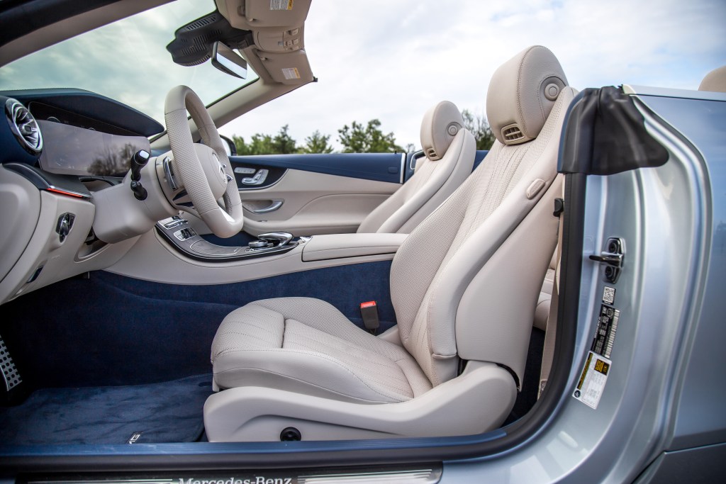 外形上,奔馳開篷車向來都有其引人入勝之處,而新改良就更能將品牌特質原汁原味地散發出來,中期更新只會使這dream car比前更形吸引。前後LED燈已重新設計,車頭燈纖幼得來動感十足,再加上全新鑽石型鬼面罩設計驟使E-Class Cabriolet新穎奪目,值得一提的是,後視鏡頭亦已與星形徽章一體式地融合在尾門上。新改良可說做得非常成功,外表不單比前更流麗和圓滑,且也能保留了奔馳過往的神韻。無論開篷或關篷,其外形都是那麼漂亮和令人討好,難怪不少女士也會被它迷倒。