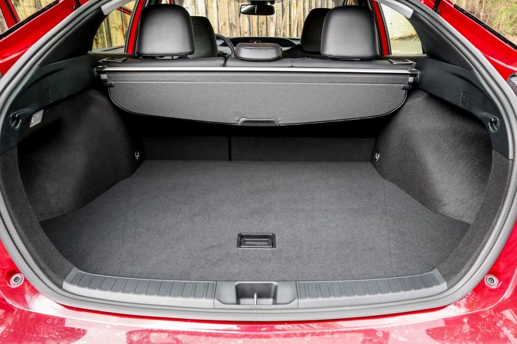 為營造最大載乘容量,電池被藏匿於後座椅底下,從而使行李箱容積寬達697公升,比Lexus UX250h的481公升裝載量大了很多。Prius使用1.8公升DOHC,VVT-i自然進氣四汽缸引擎,引擎本身的最大馬力輸出為96匹而最高扭力則有105磅呎,但憑藉前電馬達的71匹馬力後馬達的7匹馬力及前120後40磅呎扭力的渾厚功率,綜合起來之後的動力輸出就變成121匹。從起動以至慢速行駛時,若電池儲電量是充足的話,車子便以EV模式全由電池和電動馬達組合操作,直至加速和行駛速度逾39km/h時,引擎才開始介入與電動馬達一齊運作或互相交替進入Hybrid驅動狀態。Prius亦採用全新發展的CVT電子控制無段變速系統來提供更為優異的動力傳輸效率表現。