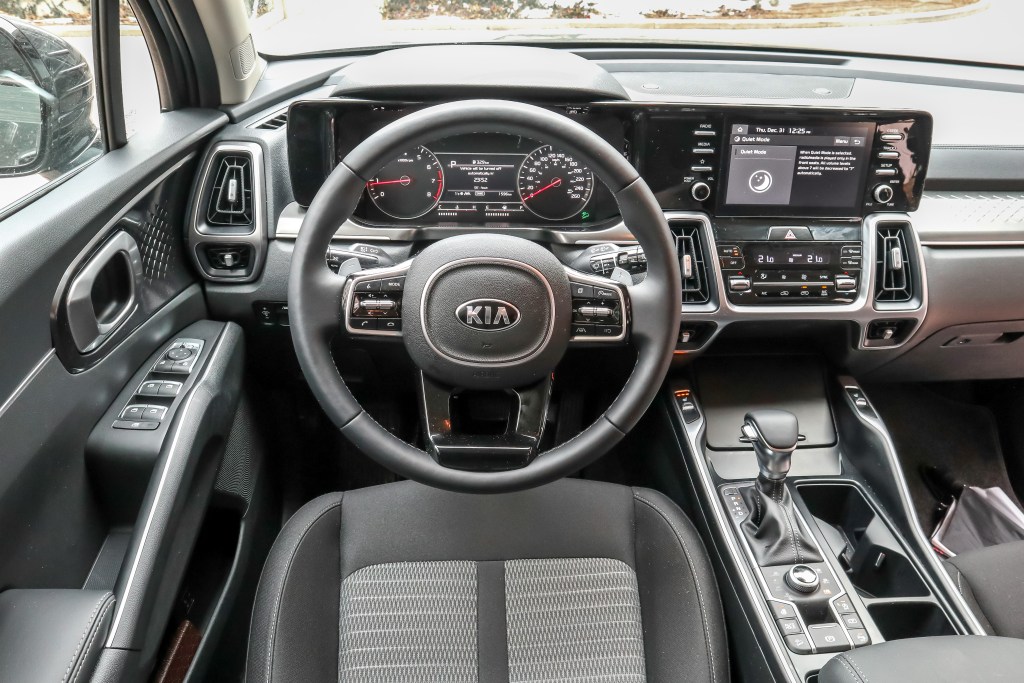 內廂設計亦已煥然一新,儀錶板和中控台所使用的材質已比前大為改善,就以所試的X-Line型號為例,即使身為2.5L Turbo入門型號,其所散發的高質氛圍如門壁及表板裝飾均令人感到猶如置身於名牌房車之內。廠方不僅全面提高Sorento的內廂素質,且還引進了多項同級車中少有的高級裝置,如10.25寸大形觸控式屏幕連12.3寸數碼化儀錶組合(SX型號),可加配的棉被狀quilt皮椅及功能多多的UVO Intelligence。透過UVO Intelligence手機應用程式On-demand Find My Car,車主可在手機上利用座駕八方攝錄機尋找泊車所在位置,而程式就更附有步行詳細指示,只要泊車不逾兩公里就行。