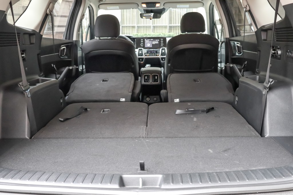 X-Line中排為二人式的長官獨立座椅(長官座椅為Sorento歷來首次應用),不僅設快速前傾機關方便後排乘員出入,還提供多達十節前後移校。第三排二人座椅作五五分割,收摺功能雖非電動但勝在操作容易,收摺完全沒有難度,當不用多載人往來之時及將椅背向前扳平之後,載貨量便會從357公升遞增至1,090公升,再將中排獨立座椅放平之後,載貨空間就隨此擴大至2,139公升。