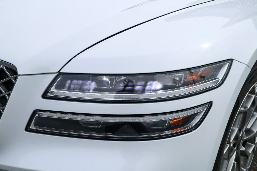 全新G80亦隨G90再度为品牌延展全新的外形设计风格和基调,在鬼面罩,前後大燈以及身側前沙板上道出劃一性的家族面譜。車首方面,最先映入眼瞳的便是氣勢凛然的全新鬼面罩設計,由五角形盔甲式進氣格柵重新演绎,烘托閃閃生辉並入黑時還會泛起光亮的Genesis廠徽,說它與其它品牌貌相神似看來倒是反映市場對豪華品牌在設計上的喜好較多,而不一定是英雄所見略同的吧。LED車頭燈和車尾燈均改以上下雙層式設計,與尾燈連貫一起的LED飾條亦可說是此車的神來之筆。前後泵把也已煥然一新,姑勿論如何紙上談兵,若非肌膚接觸,單從照片來看便難以感受設計師所付出的心血和心思,話說回來,G80的外形確實無比雅麗和獨當一面,在傳達族裔訊息和在說服力上,G80總算辦得非常成功。