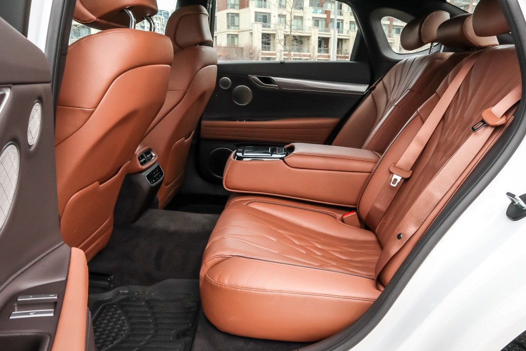 試車為2.5T Advanced型號,沒有options即意味標準設備無其豐厚及齊全。果然,全車座椅不僅以Nappa上品quilted皮革及電熱和透涼雙功能示人,尚附記憶功能,後座也是,且提供多達十六方向電動調校。此外,真木裝飾,皮包覆表板,電動電熱軚盤,全景幅天窗,無線手機充電,Genesis Connected Services® Telematics System,語控式導航系統和提供Quantum Logic® Surround環徊音響之1,050瓦功率21喇叭Lexicon音響系統也全屬標準設備。