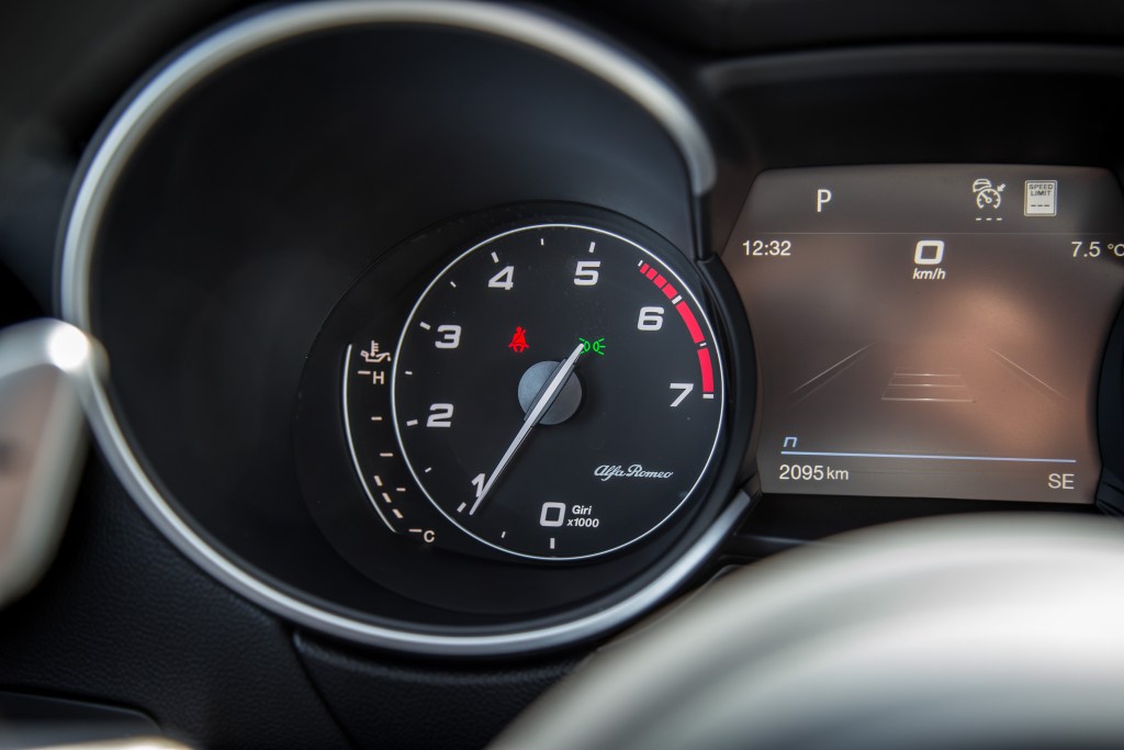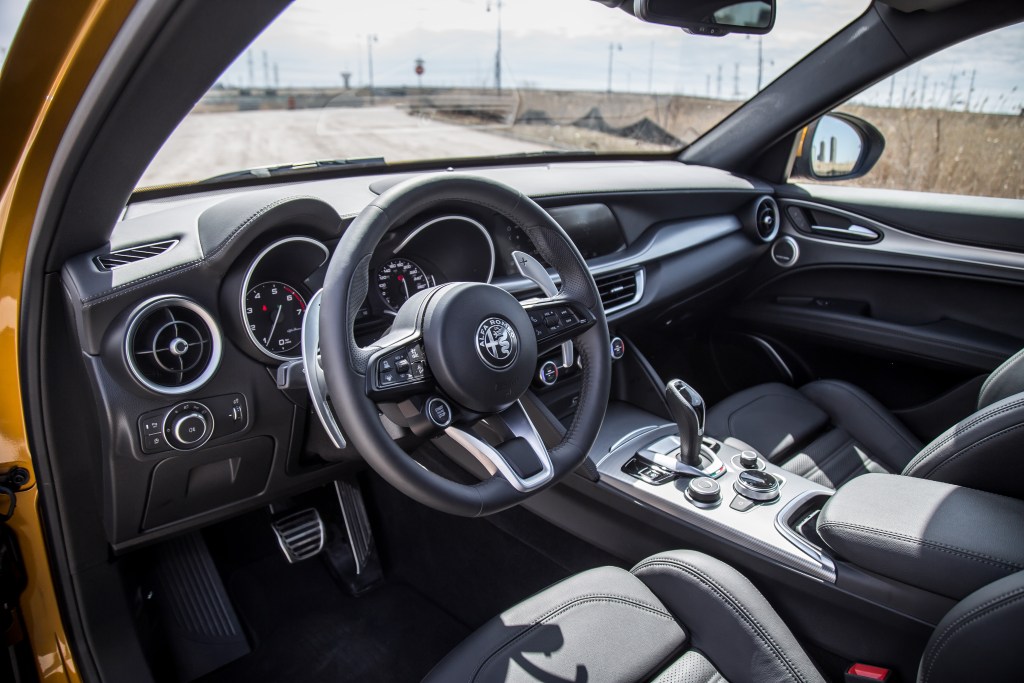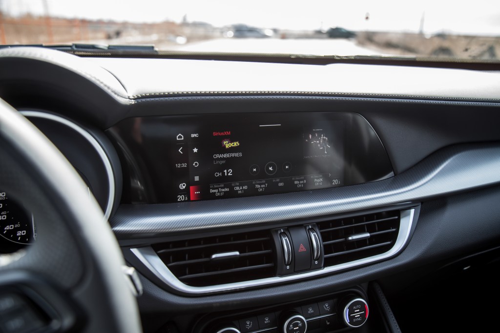 一如其他愛快羅密歐,內籠盡是駕駛者而非乘坐者的天堂,圓圓大大的撻車掣不放別處而放在軚盤上就是最好的印證,若能塗上口紅如法拉利式的就更使人覺得親密。中控台,門壁及多處其他地方均有碳纖維裝飾,還有軚盤後左右的偌大鋁製換擋撥片,讓您感到猶如置身於賽車中一樣。與瑪莎拉蒂不同,愛快並沒有在Stelvio上使用FCA組件,包括8.8寸多媒體資訊娛樂屏幕。菜單很容易閱讀,但使用提供的旋轉撥號滾動菜單則有點麻煩,不及FCA的UConnect系統好使好用。惜試車並沒有改配全紅真皮賽車座椅($695),否則便可大幅提升賽車化感受。
