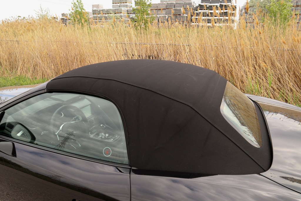 軟篷採用全電動化操作,開關掣位於波箱對下右側,觸手可及,其實即便左手忙於把軚前行時,只要車速不逾30km/h,仍可用右手去操控篷掣的,不須將車子停定下來才可操作。打開和關閉每程只須十四秒左右,篷頂一經開啟之後便會完整地藏埋於翻滾保護架後方,而車窗亦會隨開關而連同升上或下降。尾艙總容量為200公升,看來有限但收容一套高球袋絕不成問題。買家亦可另選Gloss Black($146),Chrome($446)或碳纖維($2,124)不同裝扮的Roll Hoops翻滾保護架。