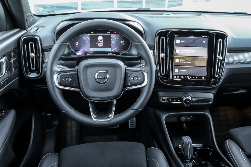 內廂看似與燃油版一式一樣,但正要起行之際發覺start/stop掣全不知去向(在燃油版XC40上原置於軚盤對後右方),不坊先將波箱捍向D下撥看看能否完事,果然就這樣可以起行。原來平時的撻車及熄匙動作經已全免,XC40 Recharge會透過駕駛席感應器來通知樞紐的,起初會有點不慣但一經熟習後便倒覺此正最自然不過的事。