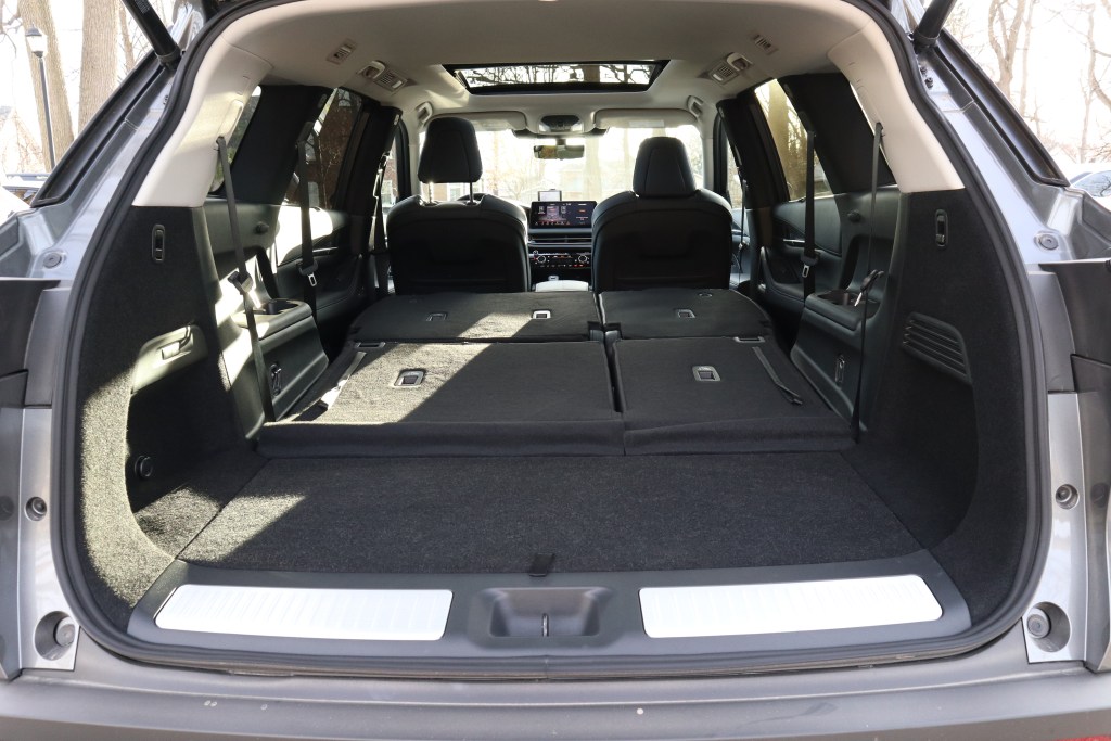 作六四分割的中排不僅一觸便能快速地前傾方便最後排乘員出入,還提供多節前後移校以騰出更多膝位空間予尾排乘員,為增進開揚感,後二排也以劇院方式設計,即地台沿後逐點升高。第三排座椅亦有電動掣但只可用來回升不能向前收摺。當不用多載人往來之時,後兩排均可作六四分割向前扳平,載貨量也會隨此從411公升遞增至 1,178公升,若再連同第二排座椅向前扳平之後,終極載貨量便會大大地攀增至2,135公升。此外,由於subwoofer已被移位,尾艙地台下的儲物盒亦因而從舊有的21公升加大至54公升。