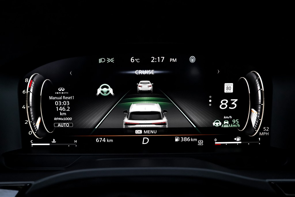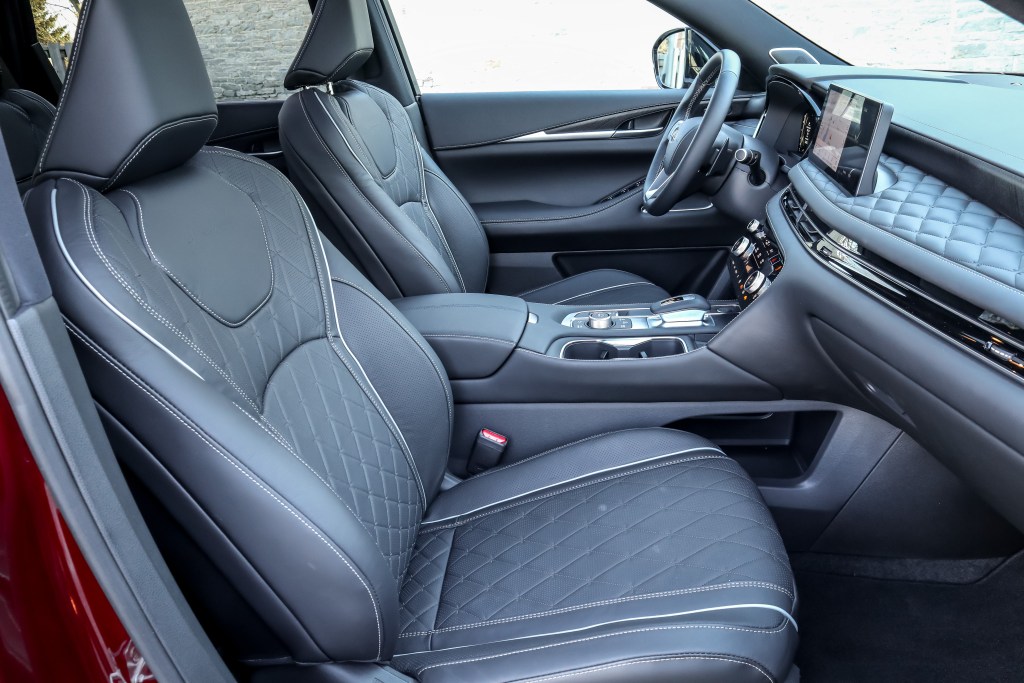 煥然一新的內廂亦盡展英菲尼迪充滿時代感的設計美學,以優雅和橫闊的缐條來營造精簡的交义匯聚,於造工和用料上亦一絲不苟,如設計師便在鋪排和顏料方面採以不同的策略,以珍貴木工和棉被quilted修飾賦予Autograph為凸顯旗艦版與Sensory的分野。為追趕潮流,除中控台顯示屏改為12.3寸觸控式設計之外,QX60亦是Infiniti旗下中率先使用12.3寸TFT儀錶組合,解像度和質感均比奔馳同樣討好。喜見座椅按摩功能亦首次在QX60上出現,座椅亦可任由車主從多項程式中擇取至愛至舒適按摩”手法”,縱然長征萬里,旅程也會從此變得輕鬆寫意。