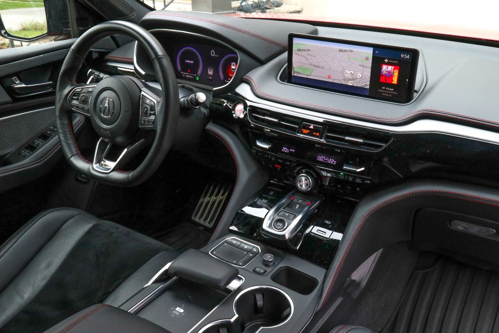 內廂亦已完全徹底改造,曾是MDX最薄弱的環節倒已成為亮點,精心打造的中控台設計就大量地從NSX借鑒過來。在上款設計上,為免操作掣過於繁複, Acura便盡以中央顯示屏來負責恆溫、音響和資訊各種操作而減用按掣硬件,但今趟則一改前設重用實質鍵掣如室溫面板就重現多達二十種鍵掣之多。謳歌的軚盤設計為業內最好看、最實用之一。它擁有厚實的皮革包裹和拇指握把,感覺就像是專門為您的手模製而成的,平底形狀使您的膝蓋不會妨礙旋轉,以及正反饋按鈕和轉盤,它提供了舒適和符合人體工程學的與車輛的連接。