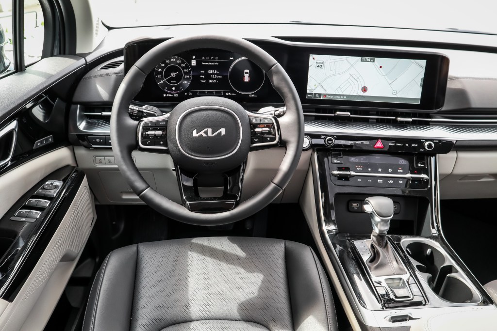 是次所試的為頂級SX型號,防護系統就當然最為齊全,除加有盲點警報系統及Rear-Cross Traffic Avoidance之外,與前車保持特定距離的Smart Cruise亦包含在內。2+2+3七人乘坐編排,第二行大班級座椅VIP Lounge Seat,高清廣角全片幅12.3寸儀表組合加12.3寸屏幕,UVO Telematics,電動滑行車門及電動物尾門等等均屬標準設置。