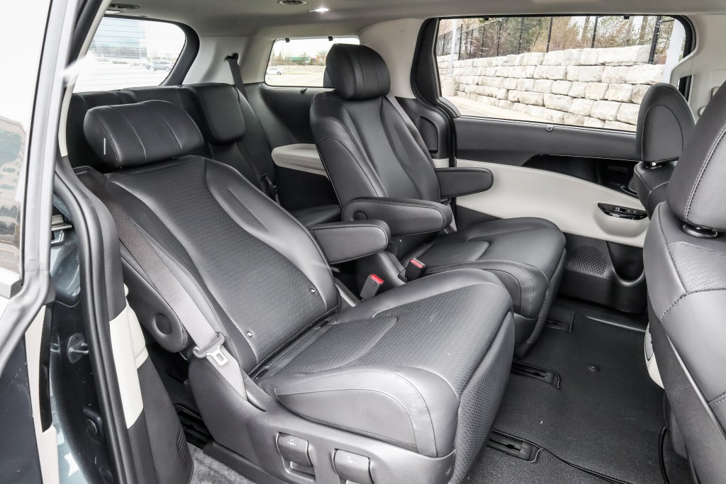 中排之二人式獨立座椅VIP Lounge Seat是我所見中設計得最好的典範,左右兩張座椅不僅可互相向旁移近或移離,且提供多項電動調校兼特定的Relaxation座姿電掣,那挺起雙腳仰臥坐姿功能就更舒服過家中的la-z-boy沙發,如此舒適無比的氛圍又怎不叫人昏昏欲睡?30毫米軸距加大的效果在內廂中顯而易見,無論是腳位或肩位,Carnival現已比Sedona寬闊得多,第三排之1,511mm肩位亦比豐田Sienna之1,485mm稍為優勝。第三排座椅作六四分割,收摺功能雖非電動但勝在操作容易,埋藏於平台底下完全沒有難度。當不用多載人往來之時,將中座拆除及將後排向後埋藏平台下之後,載貨量便會從1,139公升遞增至4,110公升。