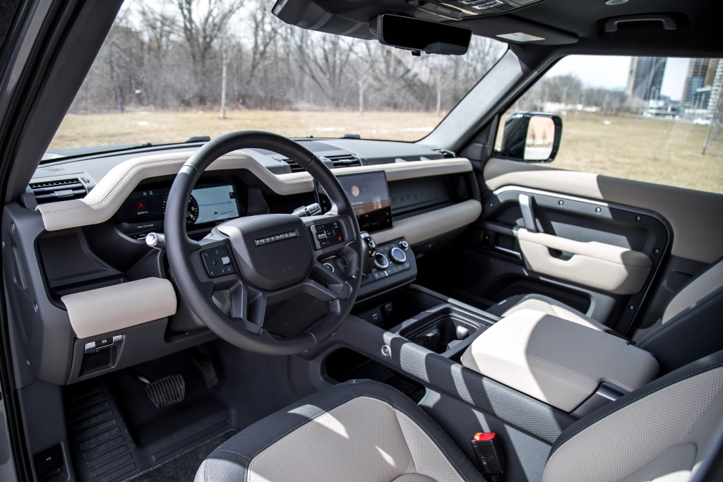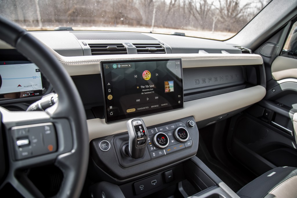 在如斯外形對比之下,Defender的內在觀亦沒有相形失色,單其搶眼觸目的琴面式十寸觸控式顯示幕便已叫人有不據為己有誓不為人的衝動。廠方稱此介面為PIVI Pro,據稱比Range Rover Velar所用的Touch Pro Duo更前衞更易入手。PIVI Pro對下的大面積面版在擺置角度上的方式讓我想起快意500,此面板除為波箱所在之外,亦集結了一切與四驅系統,行車模式以及冷暖氣系統有關的操控和按鍵。儀表板亦使用12.3寸全液晶高清顯示,雖不設虛擬功能,但可兼顧high-definition 3D mapping導航系統顯示,值得一提的是,導航系統更具內置式的専用補給電池,使運作更迅即順暢。