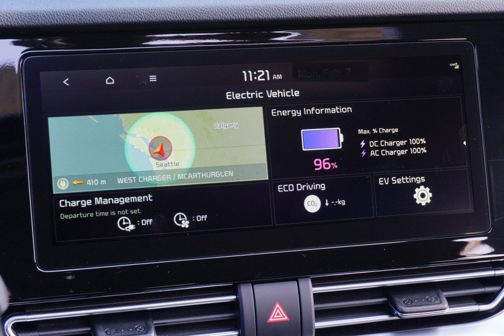 Niro EV能提供385 Km續航力其中一個原因在那組64瓩小時的鋰離子儲電池存量。如接駁Level 2 或家用的240 V充電,它可於9小時左右充滿。筆者試駕期間未用最強之動力回收程度或關閉空調,巳能達到廠方發布之標準續航力。話說回頭,相比輕磅79 Kg之Kona EV,這個續航力巳減近一成。舒適的車廂始終要付個代價。