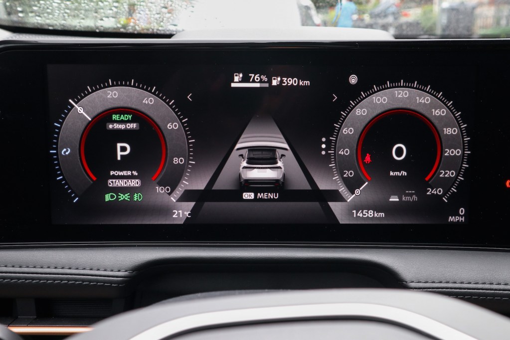 電車的另一特點是把踩踏煞制從負面變為正面,換言之,踏brake已不再是消耗能源的行為,在電車上反會換來充電的作用。除使用煞車腳踏可為電池回收能源之外,使用浮台上的e-Step掣或波桿的”B”模式亦會産生相同效果。在市區中心穿梭,只須多多善用e-Step/”B”模式就可完全不用理會腳踏煞制,無論加速、減速、緩駛或停慢,只使用單一腳踏和軚盤撥片便可,起初會有點不慣但一經熟習後便倒覺此正最自然不過的事。