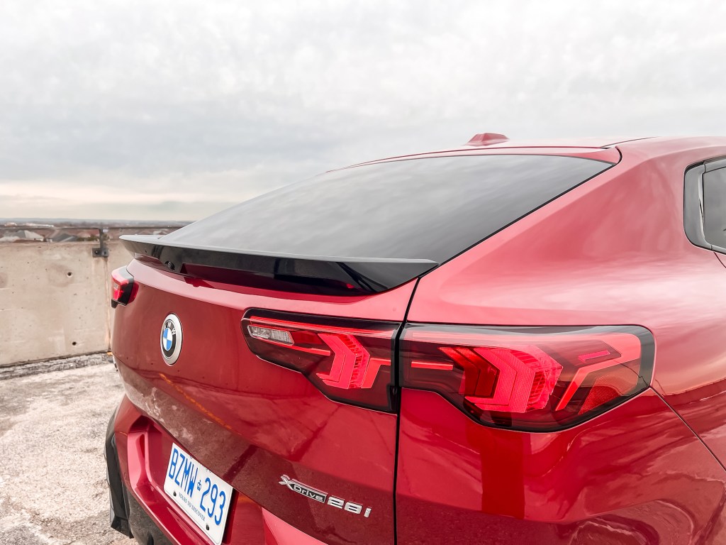 轎跑型的車頂輪廓已為X2營造與X1截然不同的風格,設計師更沒有就此收手,尚在鬼面罩,車頭燈和車尾燈方面大動干戈。雙腎鬼面罩設計比X1較橫並向左右起角,成六角形,車頭燈和車尾燈設計亦與X1完全迴異,且除形狀外就連內燈組件亦全不相同。原以為镶嵌在C柱上的蓝白宝马圓盾标志会从此掀起热潮,旋不知已不再被X2存留下來,委實可惜。