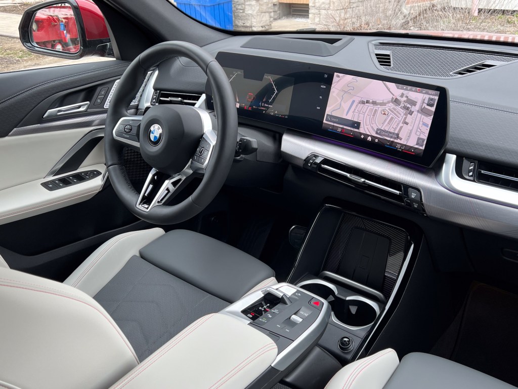安坐駕駛席之後,驚見中控台設計亦全是寶馬iX全電越野車的樣子,畢竟筆者也只幾個月前才試完iX M60,將兩車內籠照片對照一下全沒難度。説是為iX2而設,但以X2來率先展現就始料不及。除錶板台上的經典寶馬式喇叭之外,儀錶和中控台已然全沒傳統和遺留下來的歷史痕跡,取而代之的為全數碼化BMW Live Cockpit Plus,以10.25寸儀表顯示和10.7寸的多媒体通讯娱乐顯示屏來彰顯潮流所向。作為寶馬X系最小一員,X2內廂倒教人如淋春風,清氣爽人。