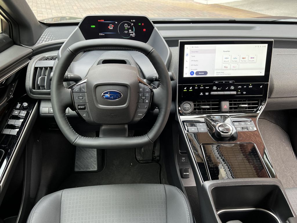 Solterra亦提供Power和Eco两種駕駛模式,但实际作用不大,最好还是多使用Regenerative braking系統。Solterra的Subaru Symmetrical Full-Time All-wheel Drive系统在起段时已然長篇大论一番,在此想補充的是,其離地距為211mm,進入角和離去角分別有17.7°以及25.4°,離去角仅比路虎Range Rover Sport之29.9°窄4度角而已,足見Solterra的越野性能是绝对肯定的。