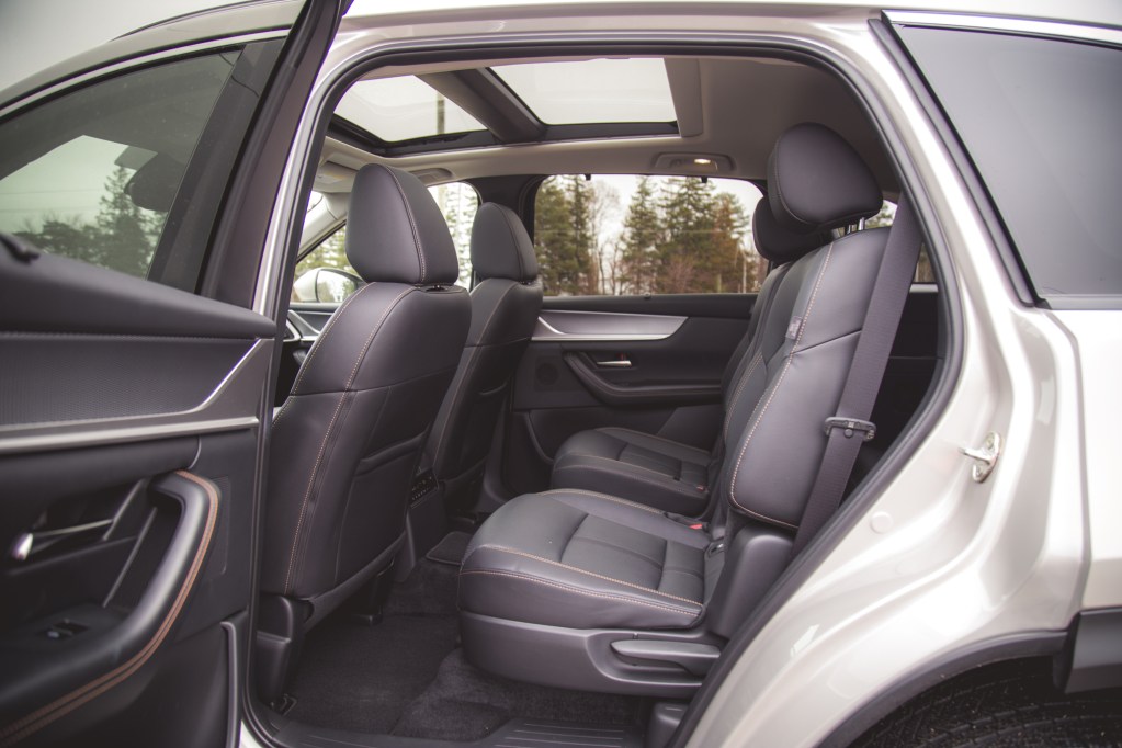 GT中排使用二人式的長官獨立座椅,座背上設快速前傾機關方便後排乘員出入,並提供多節調校為應對後排乘用而前後移動。作六四分割的三人尾排雖沒有電動收摺功能,但收摺完全沒有難度。當不用多載人往來之時及將第三排椅背向前扳平之後,載貨量便會從423公升遞增至1,133公升,再將中座扳前之後,載貨空間就隨此擴大至2,101公升。舊CX-9的等同裝載量為407,1,082以及2,017公升。