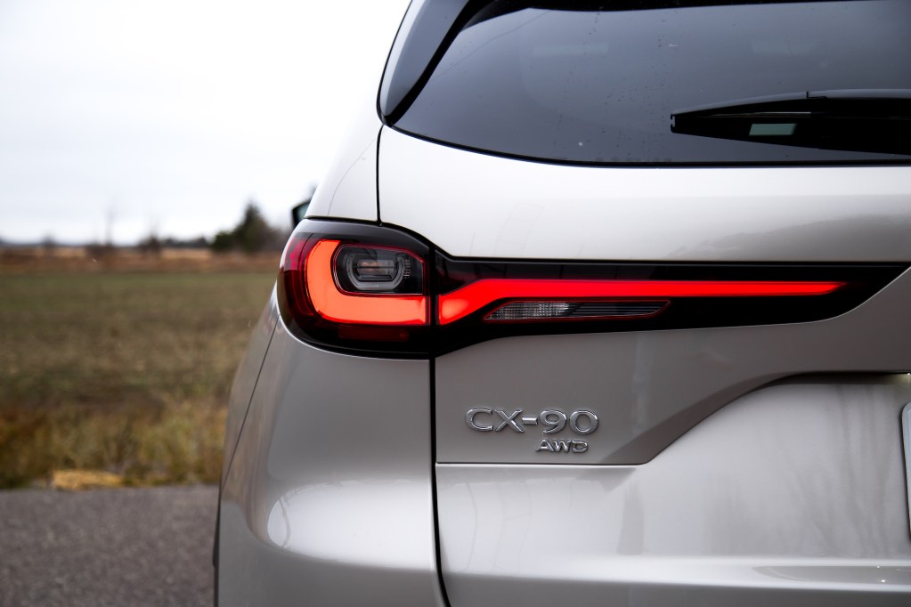 外形雖仍帶有CX-9的模樣,但車頭造型變得更加尖刻,而頭燈組銳利的眼神,搭配水箱護罩顯得恰好,呈現出一股越野戰鬥氣息。車側樣貌也同樣飽滿,以剛硬線條顯現出CX-90的肌肉感,比起上一代的文質彬彬,CX-90似乎更入世了點。前沙板上的”INLINE6″黑牌兼顧新強化動向,是值得令人讚賞的地方。秉承家族設計風格的外形亦同樣地貫徹了萬事得”KODO魂動”設計哲學,動感風格比前更為強化,兩盞烔炯有神的車頭燈和車頭鬼面罩的連貫性亦可說是此車的神來之筆,車尾設計亦與前方互相呼應,全新CX-90的確是一部轍頭轍尾皆美的近代之作,設計路向簡直與宿敵的本田Pilot完全迴異。