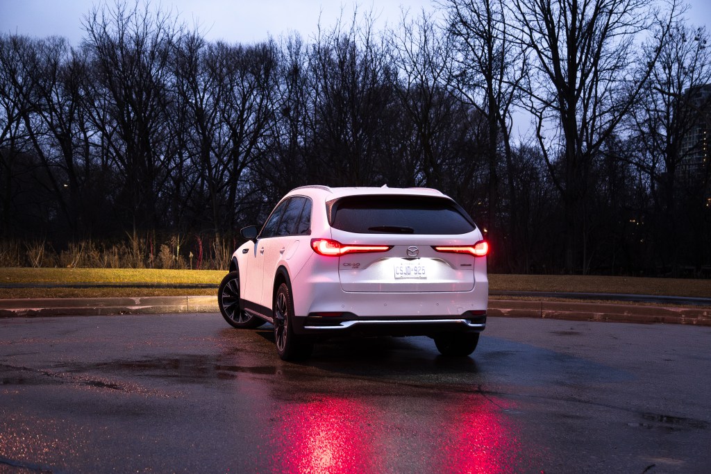 懸掛設計與前截然不同,前懸掛已從CX-9的麥花臣支柱改為雙願骨,後為多連桿式布局,吸震效能之提升為CX-90帶來前所未有的行駛舒適感,萬事得CX-90已然表現得十足十一部豪華四門房車的了。在多彎的山道上,CX-90亦有頼新組合發揮了比預期要好的動態表現,車子在應付狹窄刁鑽的小彎道上從容不逼,側身滾動全不明顯,再加上良好的車體剛性,CX-90依然造就出極佳的操控性。