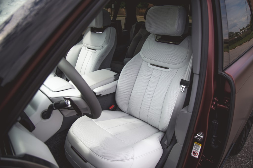 路虎的”Reductive New Design”設計語彙亦盡在Range Rover SV內廂中表露無遺。昔日一上一下尺寸相同的資訊顯示系統現已不再,由繁複式反璞歸真,以搶眼觸目的Pivi Pro琴面式13.1寸觸控式曲面顯示幕示人,集結一切與四驅系統,行車模式以及音響系統有關的操控和按鍵。儀表板亦使用極富立体感的13.7寸面板式全液晶高清顯示,兼顧high-definition 3D mapping導航系統顯示,值得一提的是,導航系統更具內置式的専用補給電池,使運作更迅即順暢。1,700瓦功率28喇叭的Meridian Signature Sound System音響組合亦肯定會令你聽出耳油,回味無窮。