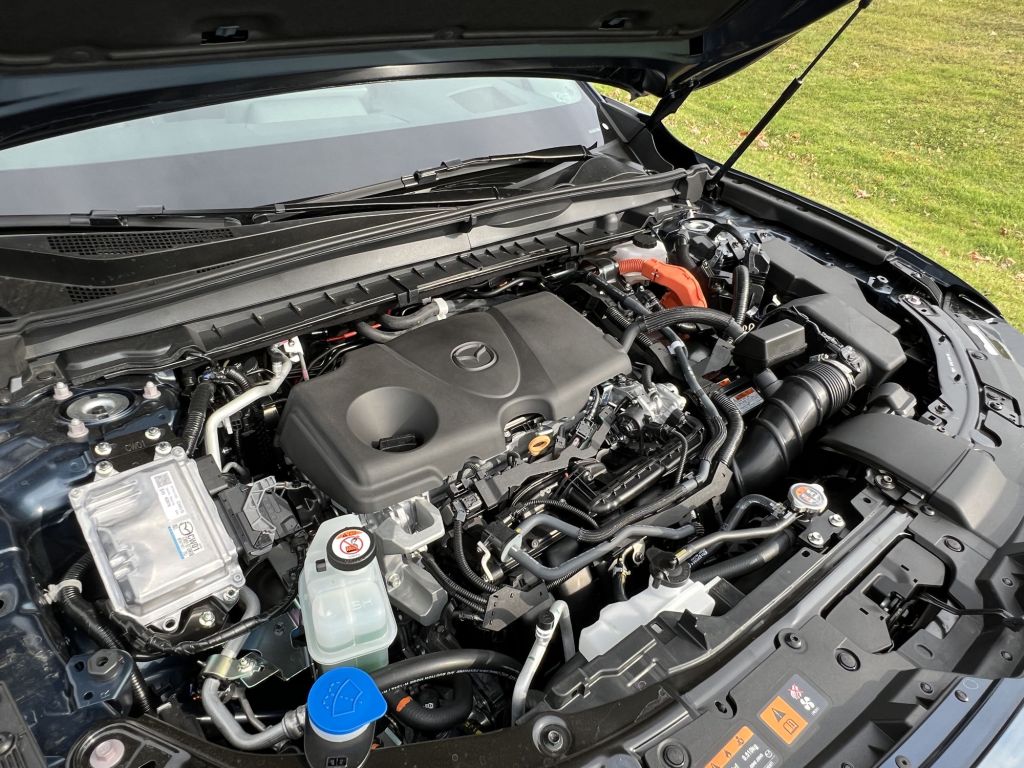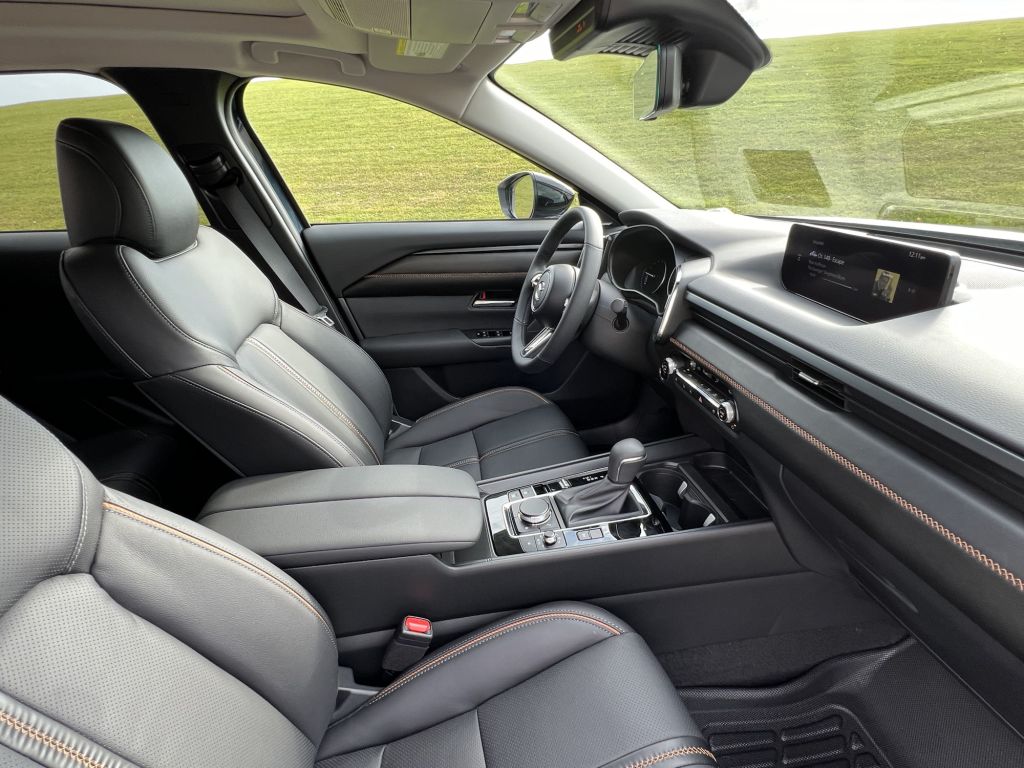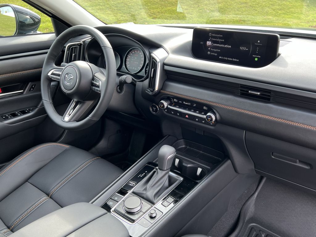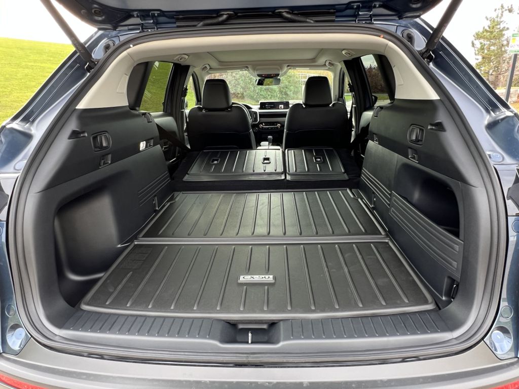 除波箱右方多了一个”EV”键掣之外,內廂布局与CX-50大致相同。马自达不僅全面提高CX-50的內廂素質,且還引進了兩項同級車中少有的高級裝置,一為廠方稱為Human Machine Interface HMI的滑鼠操控介面連同10.25吋大形屏幕的系統,而另一項則是Active Driving Display亦即是投射儀錶Head-Up Display。一些日常使用介面如音響,藍牙電話及一般行車設定都可透過HMI來操作之外,其它諸如保養事項,耗油量資訊兼慳油指引以及衛星導航系統等等亦以HMI來負責顯示和操作的。行李廂容量方面,CX-50 Hybrid並没有受制于双动能装置而作出妥协,其最細和最大(扳平後座椅背後)裝載量依然是CX-50的889和1,595公升。