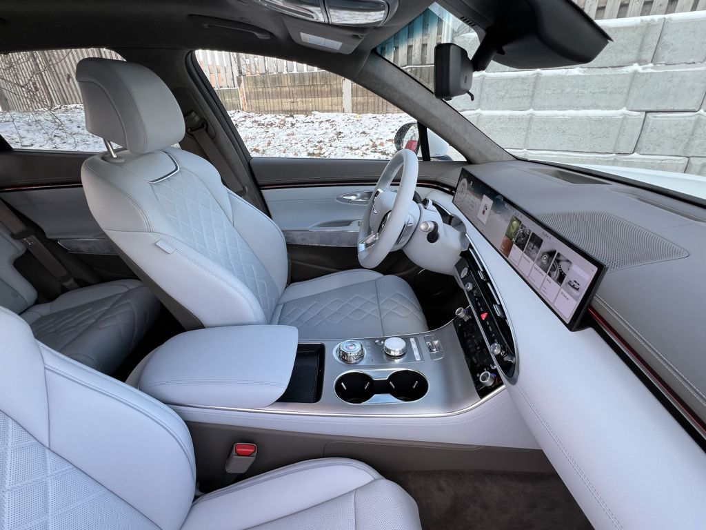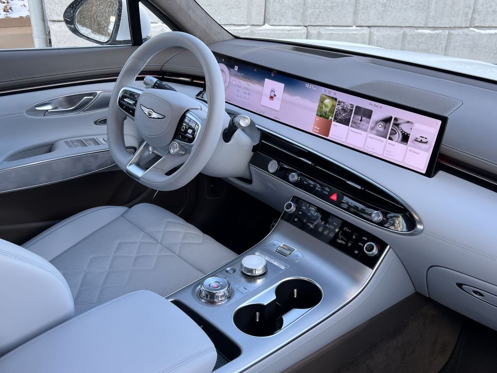 車室內裝延續 Genesis 融合高科技與韓國美學的設計理念——「留白之美(Beauty of White Space)」。使用全新 27 吋 OLED 超寬螢幕仿如華丽轉身,將儀表板與資訊娛樂系統整合為一體,呈現簡潔且極具未來感的橫向視覺布局。