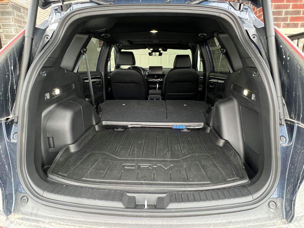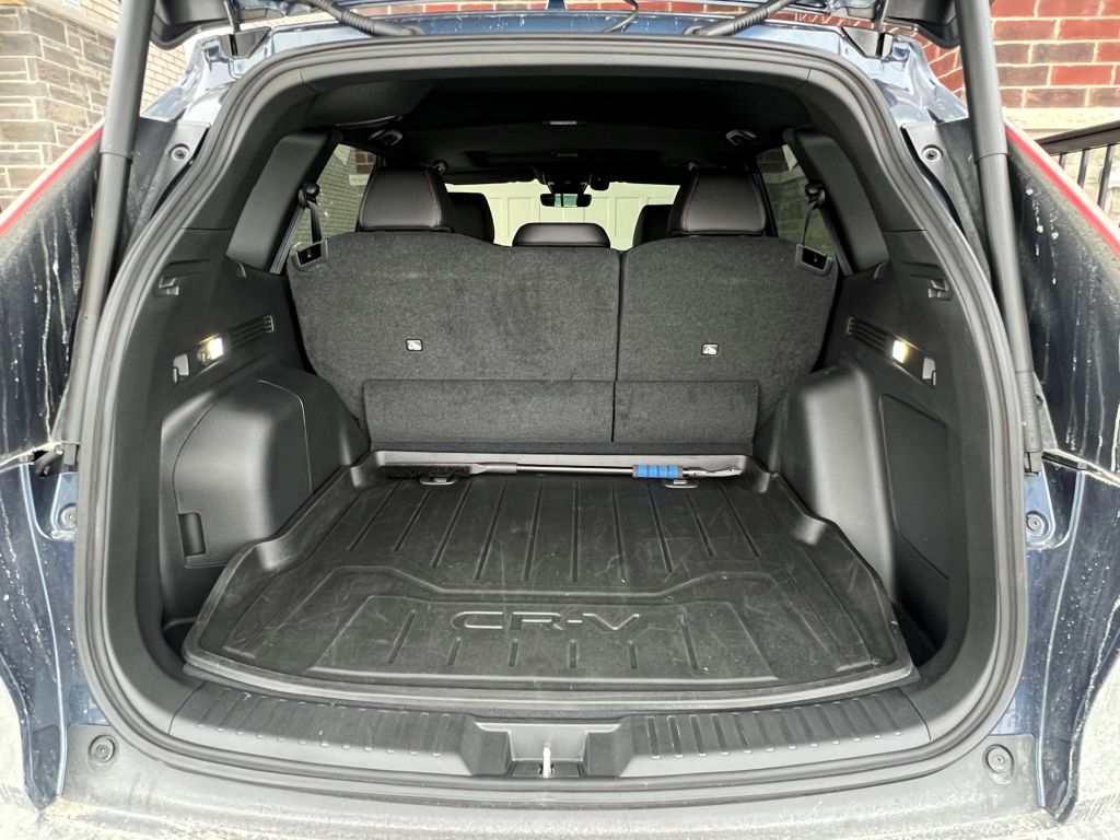 車身的大幅擴展為內部空間帶來了前所未有的寬敞感,尤其是後排乘客的舒適度大幅提升。不論是頭部空間、腿部空間還是膝部空間,新車所提供的寬裕感都遠超舊款。在尾艙容積方面,儘管新舊款差異不如乘坐空間那麼顯著,但仍有所不同。全新CR-V的行李廂容積在前座椅背放倒後可達2,030公升,而後座放倒後為1,028公升,相較之下,舊款的行李廂容積為1,065公升。