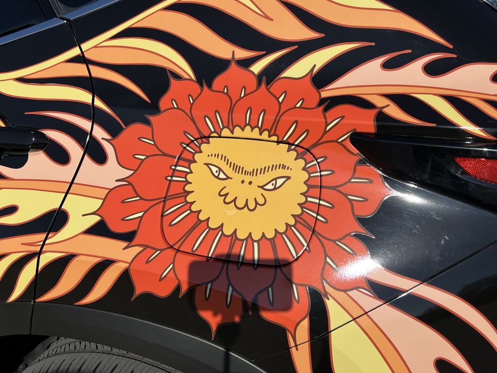 在這次與Lexus Canada的合作中,PERU利用整車包膜vehicle wrap技術,將Lexus IS 350轉化為一件街頭藝術作品。車身表面布滿圖騰形狀的面孔、抽象的角色以及活潑的色塊,這些設計元素象徵著童年時代的幻想與探索,並呼應了他對城市文化與原住民傳統圖像的持續關注。